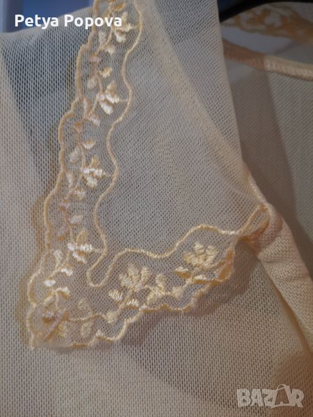 Боди в жълт цвят, мрежесто отгоре. Отдолу има непрозираща част. Обличано е много малко.