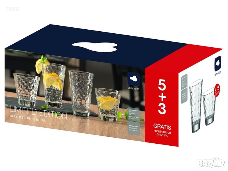НОВИ! Чаши за уиски и безалкохолно 8 броя Leonardo Optic