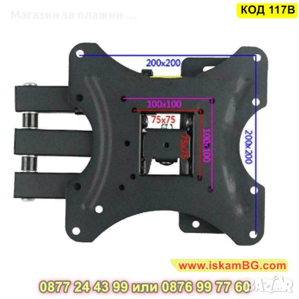 Универсална въртяща се стойка за телевизор 14-42"инча, до 35кг - КОД 117B