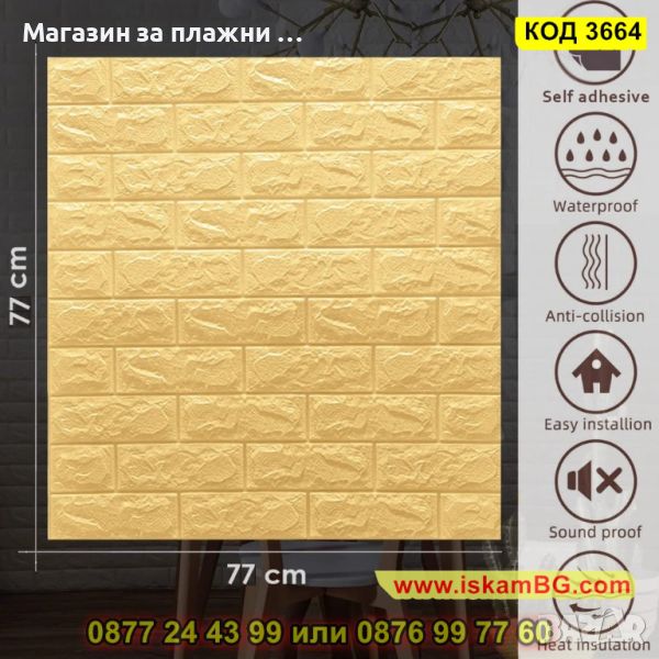 Декоративен и топлоизолиращ 3Д панел за стена 77х70 см. - КОД 3664