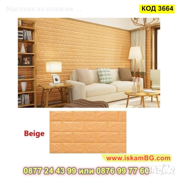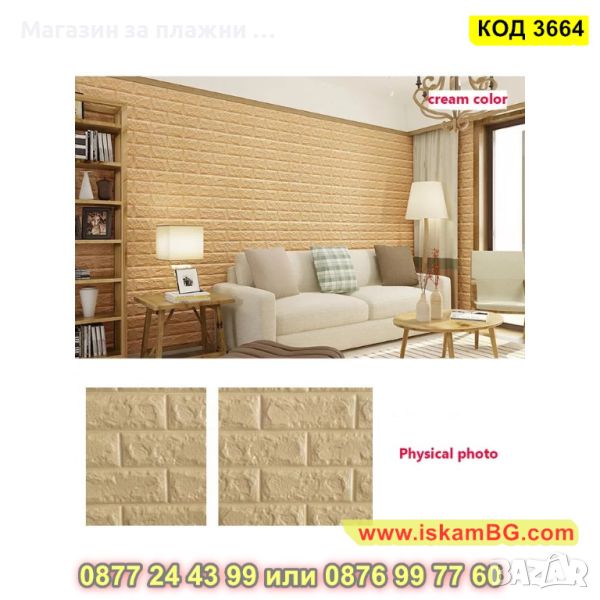 Бежов, декоративен и топлоизолиращ 3Д панел за стена 77х70 см. - КОД 3664