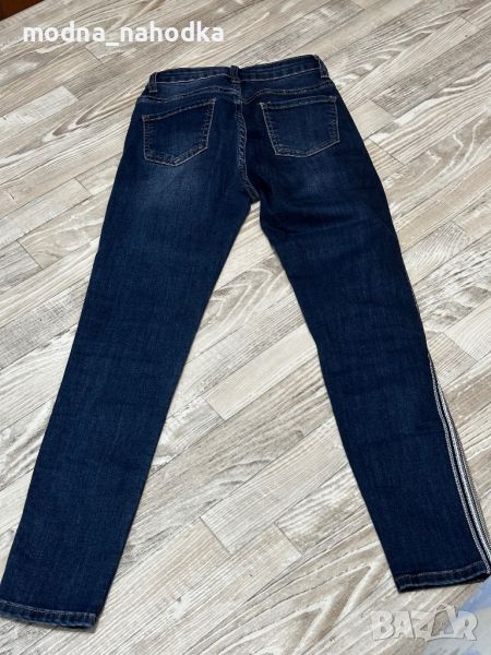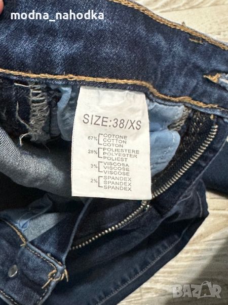 Модерни дамски дънки, неразличими от нови; с цип отстрани на всеки крачол (циповете НЕ са декоративни и крачола може да се отваря); размер XS/38.