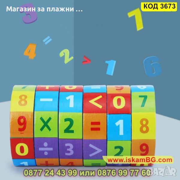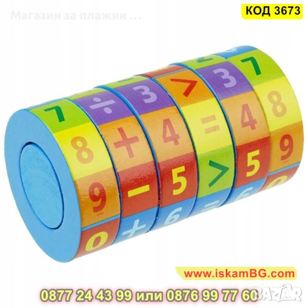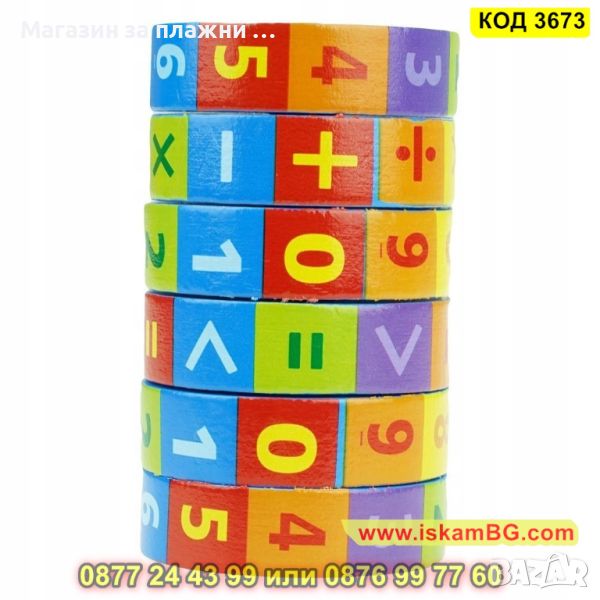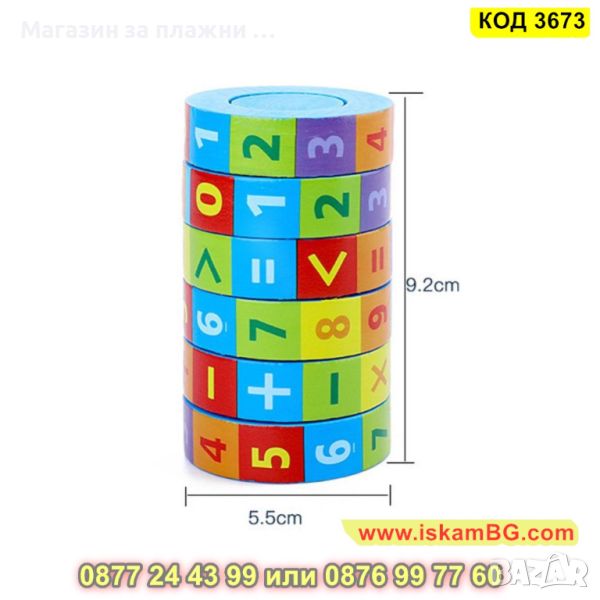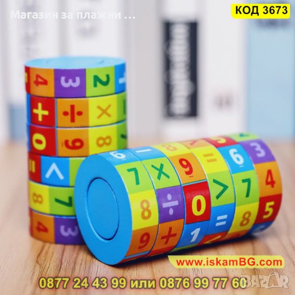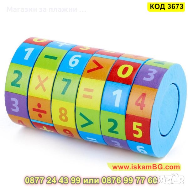 ● Дървена играчка за учене на броене и смятане, математически цилиндър-пъзел