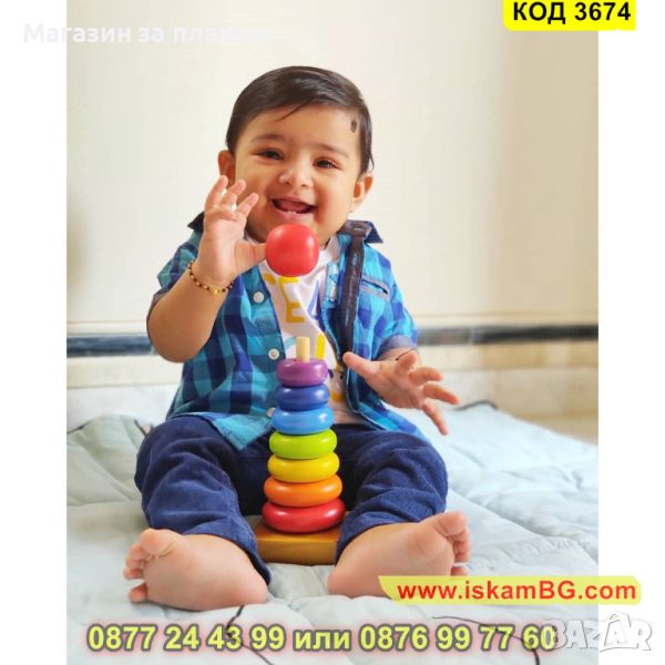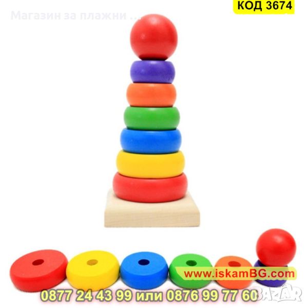 ● Включено в опаковката: 1 брой комплект Малка дървена пирамида от цветни рингове
