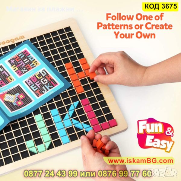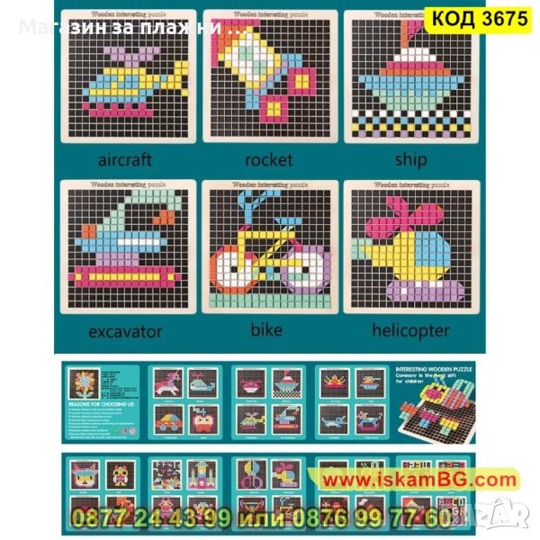 ● Децата ще харесат този дървен пъзел мозайка с ярки цветове;