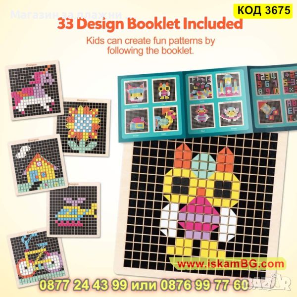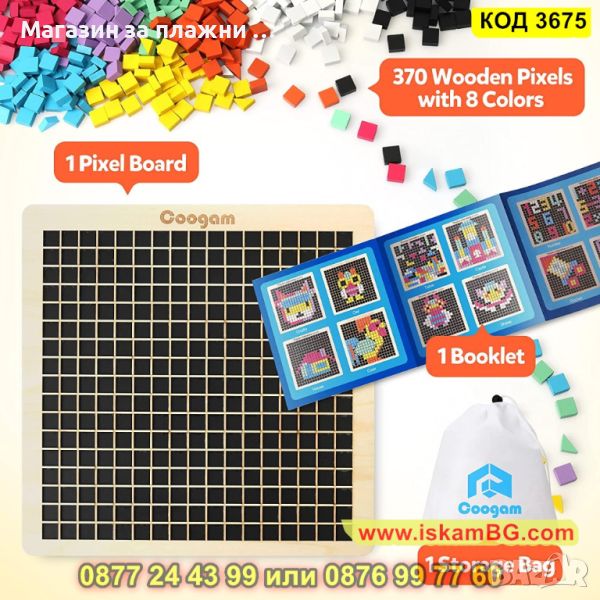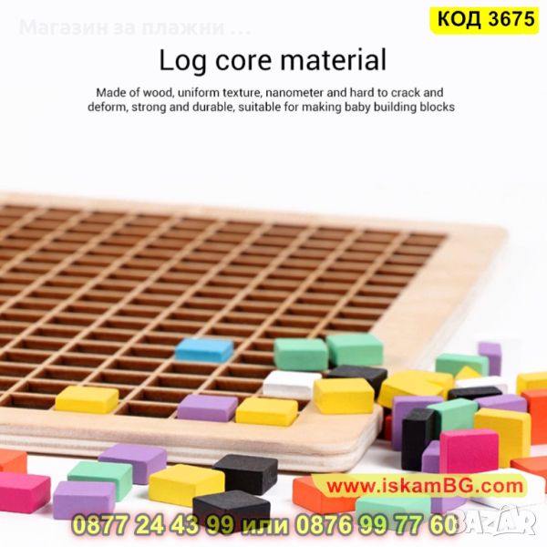 ● Общо играта с дървен пъзел мозайка има 370 парчета, налични в 8 цвята;