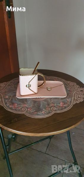 Порцеланова чаша, чинийка и лъжичка.