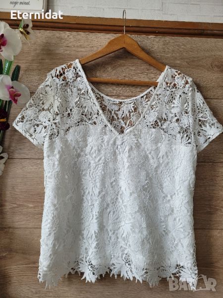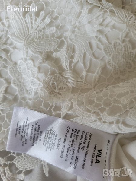Снежно бяла блузка рязана дантела на марката VILA. Не е носена. Размер Л.