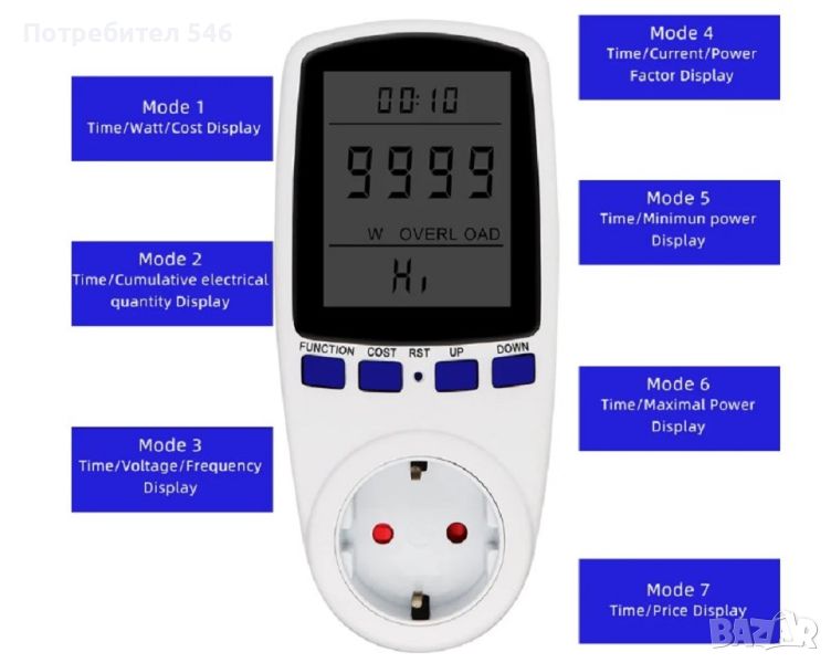 • Лесен за използване: Просто включете измервателния уред и започнете да следите консумацията на енергия веднага.