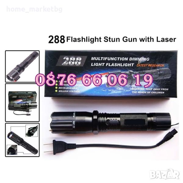Eлектрошок, фенер с червен лазер. Индивидуално средство за защита от нападение, LED фенер и лазерна показалка.