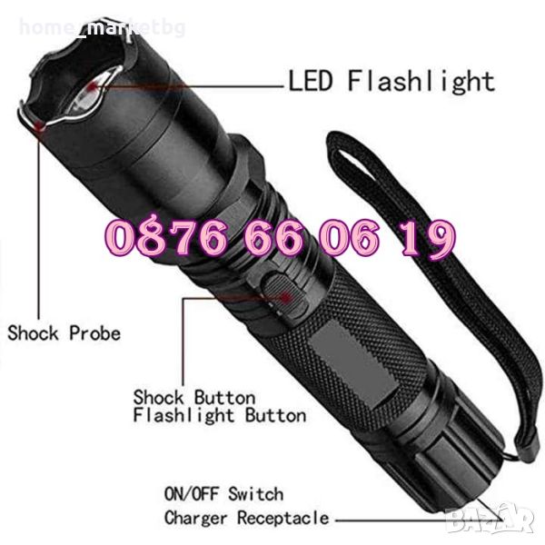 Компактен и удобен за използване електрошок във формата на LED фенер. Ефективно средство за самоотбрана