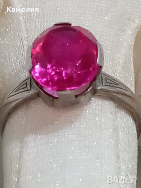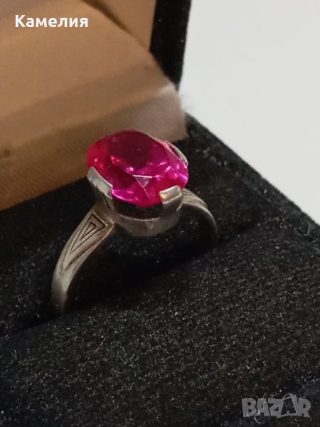 Руски ( съветски) сребърен пръстен. Проба звезда 875. Диаметър 19,5-20 мм. Камък синтетичен корунд, цвят розов.