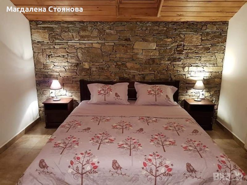 На първият етаж са механа с камина, 3 спални,2 бани с тоалетни и закрита тераса с барбекю.На вторият етаж са 3 спални,1 баня с тоалетна и тераса.На двора има кръгъл басейн 5м.Къщата има излаз на река и на асфалтиран път, който е достъпен целогодишно.