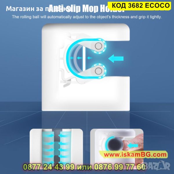 Закачалка за дръжки на метли и мопове - 1 брой