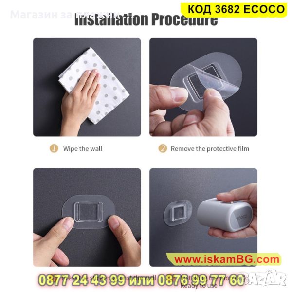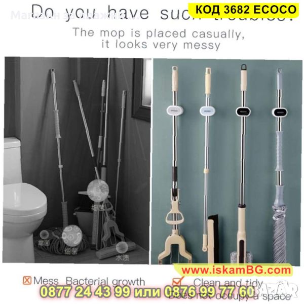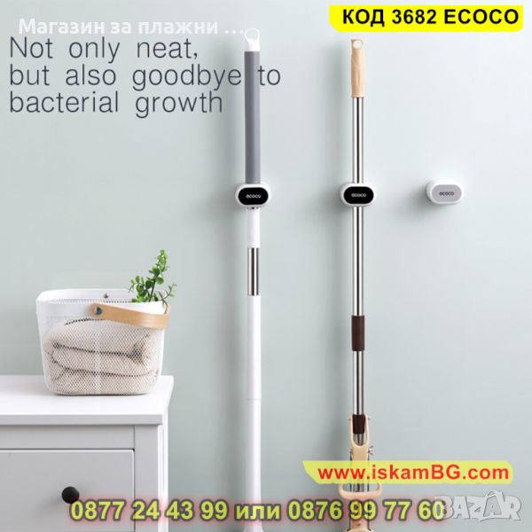● Можете лесно да монтирате стенна самозалепваща се закачалка за метли и мопове Ecoco сам и без инструменти;