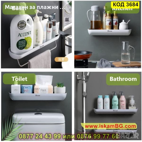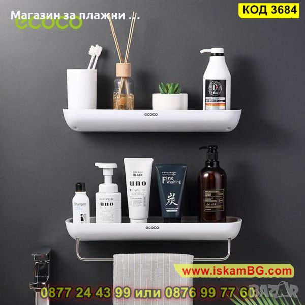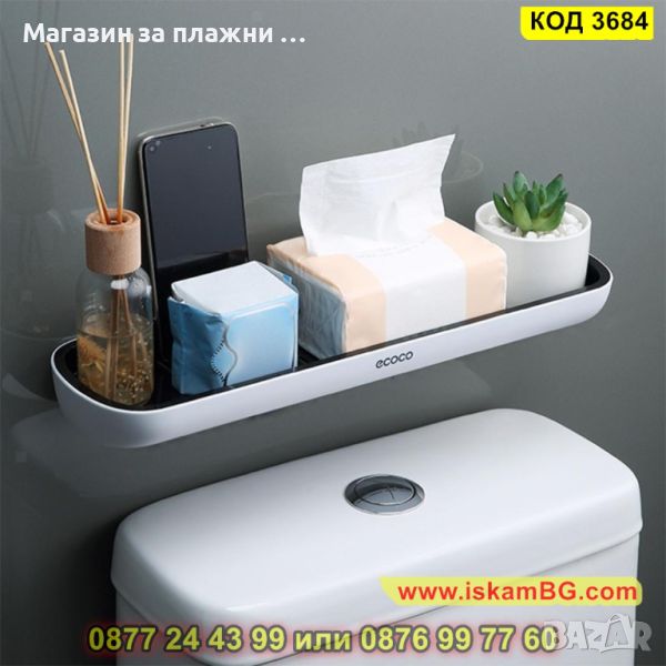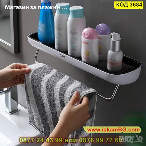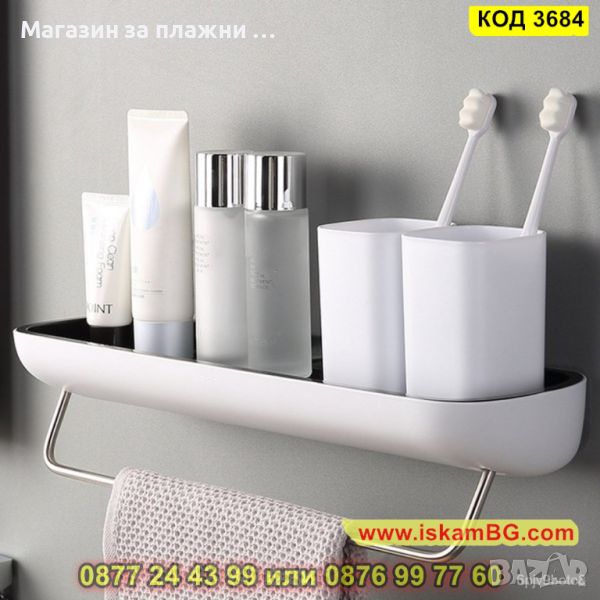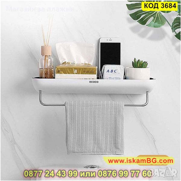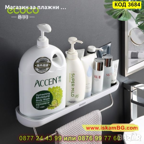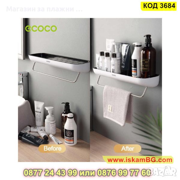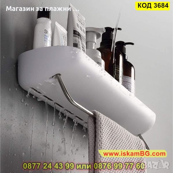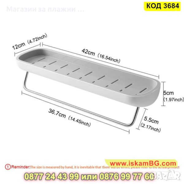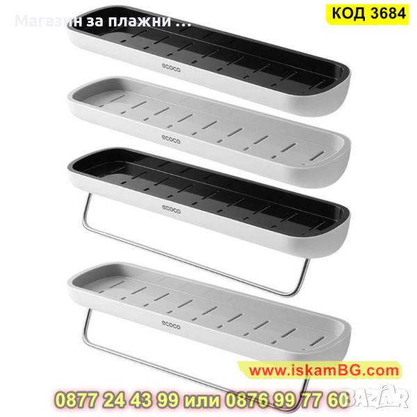 Практична оребрена етажерка за баня, идеална за козметични принадлежности, аксесоари за баня и козметика.