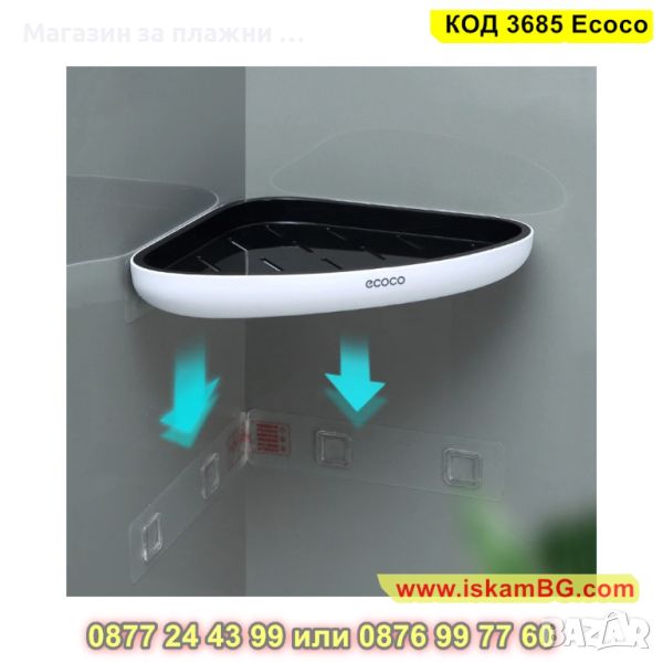 Самозалепващата се ъглова етажерка за баня се поставя лесно без да е необходимо излишно дупчене. Бордът, който има предпазва предметите, които са поставени на нея от падане. Стилни цветове, които подхождат на всеки интериор.и схема е подходяща за всеки интериор. Заоблените ъгли, които ъгловата етажерка притежава ви предпазват от нараняване.