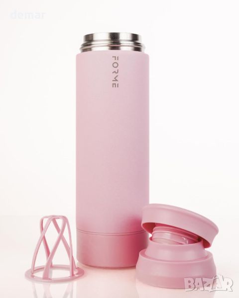 FORME Протеинов шейкър от неръждаема стомана, 500 ml, вакуумно изолиран с двойни стени, розов