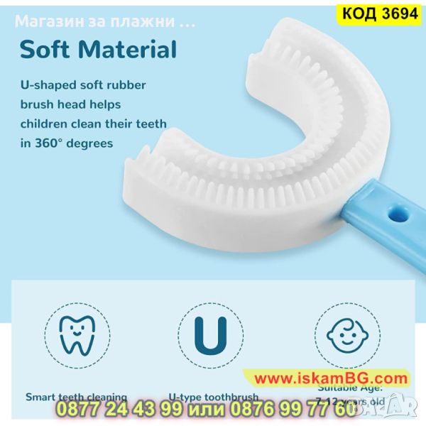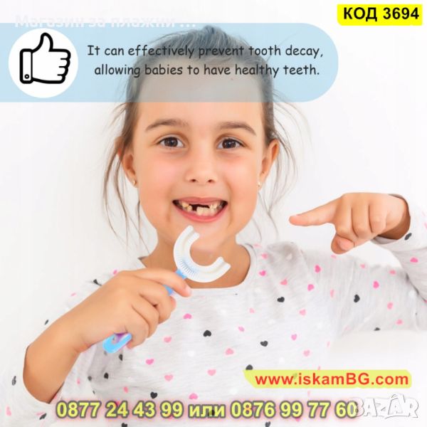 Иновативна четка за зъби за деца с U образна форма - КОД