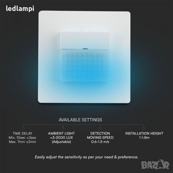 - Регулируемо забавяне на времето - Околна светлина - Разстояние за откриване за разнообразни сценарии