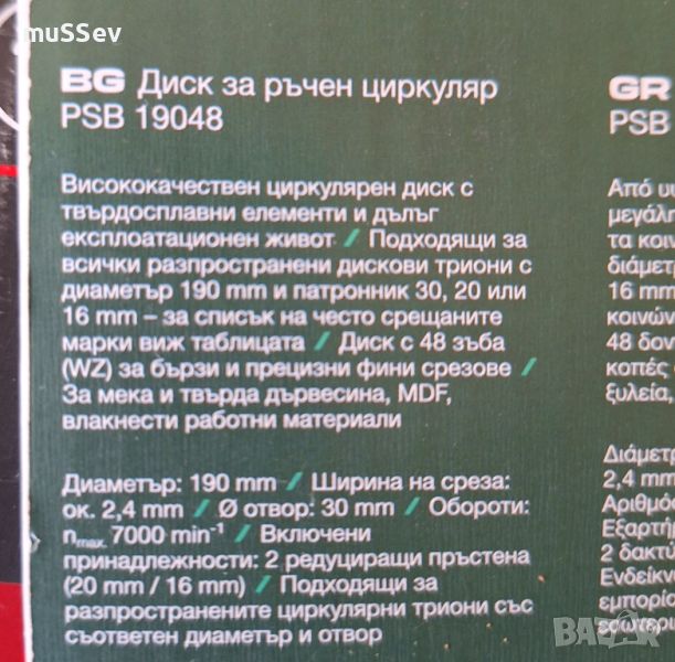 диск за ръчен циркуляр 190мм. на Парксайд , снимка 1 - Други инструменти - 45097045 диск за ръчен циркуляр 190мм. на Парксайд , снимка 2 - Други инструменти - 45097045 1/2