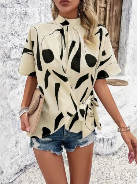 Ново ежедневно дамско горнище с къс ръкав с щампа, 3цвята