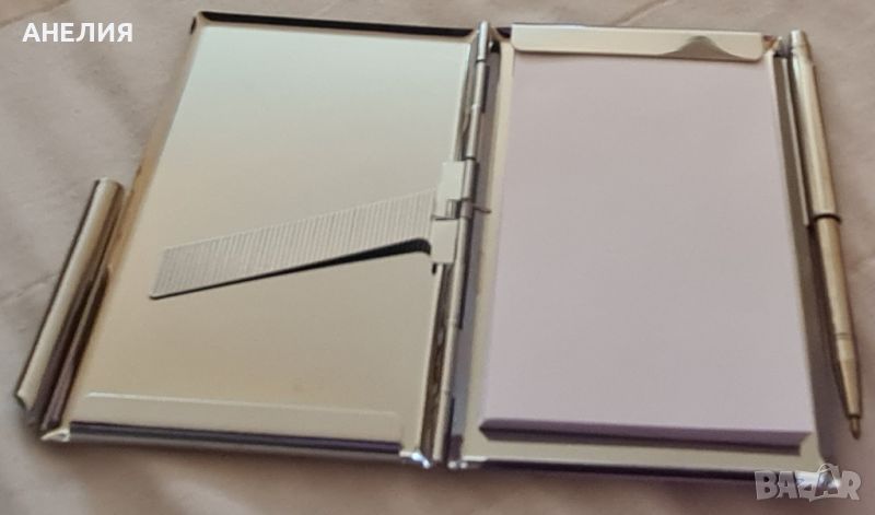 - Иноксов луксозен ретро визитник с бележник и химикалка, 20лв.
