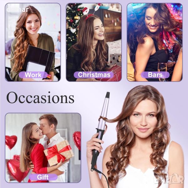 Маша за къдрене на коса, 19-32MM професионална керамична с топлоустойчива ръкавица