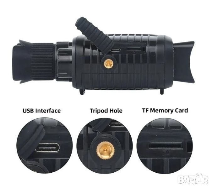 монокъл за нощно виждане е снабден с вградено записващо устройство, така че може да се използва както за наблюдение, така и за запис на снимки и видео. Устройството работи ефективно при пълна тъмнина. На дневна светлина може да се използва и като обикновен монокъл. Отличен избор за нощен лов, ориентиране, военни игри и патрулиране.