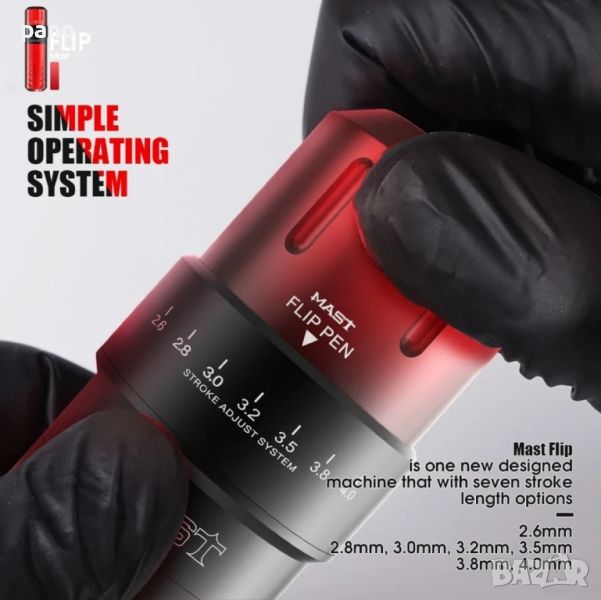 (95€) MAST FLIP чисто нова, фабрично запечатана. 6 нива на регулиране на строука- 2.6,2.8,3.0,3.2,3.5,3.8,4.0. Тегло 173гр. Диаметър 30мм. Дължина 111мм. Работно напрежение 5-12в. РЦА връзка за батерия, или кабел( в цената не се включва захранване) ЦВЯТ ЧЕРВЕН МАТ. Модела е една от легендарните на МАСТ.