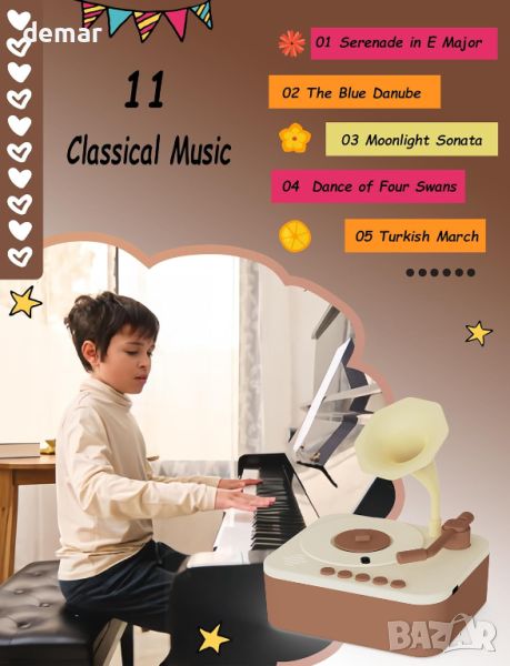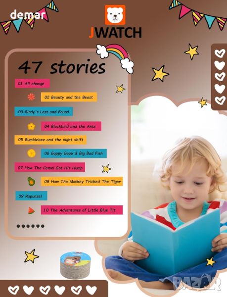 Детският фонограф Jwatch, сензорна музикална играчка, предназначена за възраст 3-6 години. Оборудван с 99 цветни карти с 3 плейлиста, той предлага 47 истории, 38 детски песни и 11 класически музикални произведения за непрекъсната игра. Устройството насърчава любовта към музиката, повишава чувствителността и насърчава положителното психично здраве с разнообразния си избор. С вградена батерия децата могат да се наслаждават на любимите си истории навсякъде, насърчавайки взаимодействието и емоционалните връзки с приятели. Лесен за работа, децата могат лесно да поставят и изваждат карти, подобрявайки фината моторика. Грижейки се за когнитивното развитие, той подпомага възприемането на света, усещането за език и култивира навиците за четене, съобразявайки се с нуждите на децата на различни етапи.