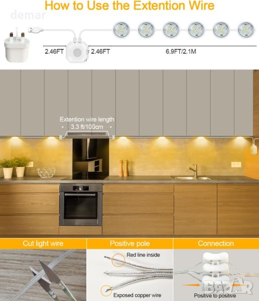 MORIACC Вътрешно LED осветление за кухня, под шкаф, под плот, за гардероб, с таймер, 6 бр.