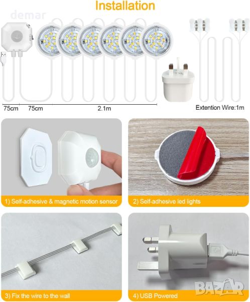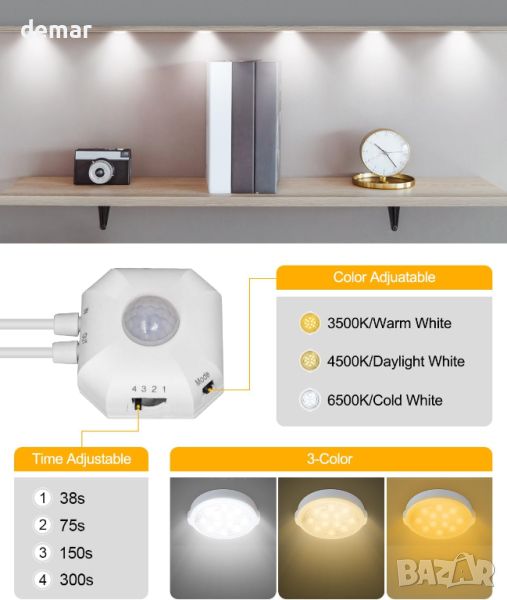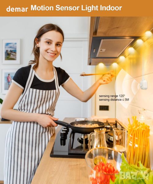 Кухненските лампи MORIACC Under Cabinet разполагат с удобен сензор за движение с 5 метра и 120° обхват, автоматично осветяващи пространства с 6 жични LED светлини с шайба, всяка от които съдържа 12 перли с висока яркост за достатъчно осветление на кухнята. Тези сензорни светлини на закрито могат да превключват между студена, дневна светлина и топло бяло (3500K/4500K/6500K), за да отговарят на различни нужди от осветление. Захранвани от USB за безопасност и лекота, елиминиращи честата смяна на батериите, те са идеални за кухни, гардероби или стълбища. Инсталирането е безпроблемно: просто пъхнете лампите под шкафа, поставете сензора и включете захранването. Регулирайте цвета на светлината и времето за автоматично изключване (38/75/150/300 секунди) за персонализирано, удобно решение за осветление.