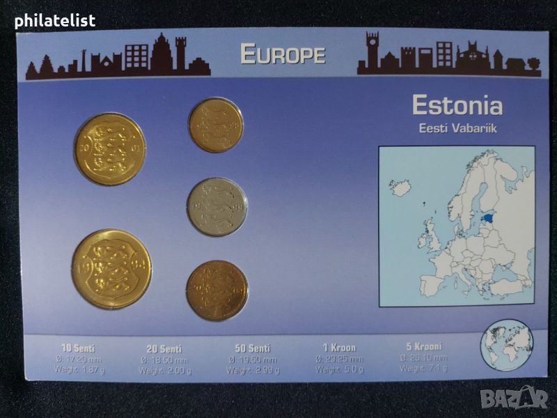 Комплектен сет - Естония 1994 - 2004 , 5 монети, снимка 1 - Нумизматика и бонистика - 45099751 Комплектен сет - Естония 1994 - 2004 , 5 монети, снимка 2 - Нумизматика и бонистика - 45099751 Комплектен сет - Естония 1994 - 2004 , 5 монети, снимка 3 - Нумизматика и бонистика - 45099751 1/3