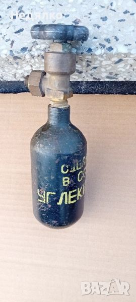 Уникална колекционерска находка,за феновете на милитария,оригинална бутилка с въглероден двуокис-празна,от катапулта на руските Миг21 ползвани и за Миг29.При приводняване пилота пълни с бутилката надуваемата спасителна мини лодка.Част от така нареченият "НАЗ"- неприкосновен авиационен запас!