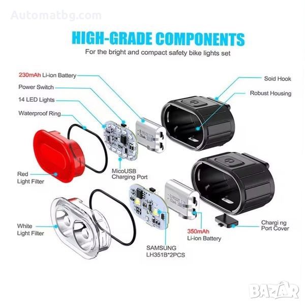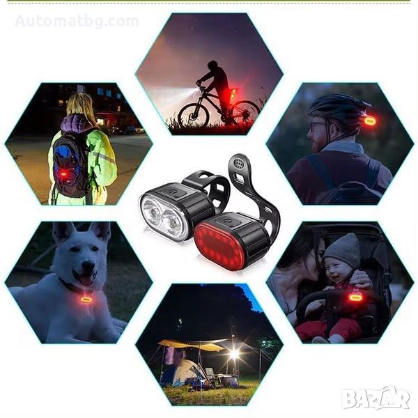 LED светлини за велосипед Automat, Акумулаторни, Водоустойчиви, USB.