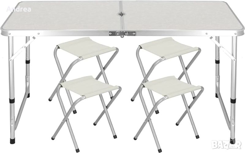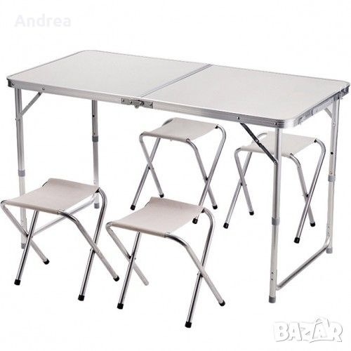 Сгаваема маса за къмпинг с 4 стола, снимка 1 - Маси - 45101701 Сгаваема маса за къмпинг с 4 стола, снимка 2 - Маси - 45101701 Сгаваема маса за къмпинг с 4 стола, снимка 3 - Маси - 45101701 Сгаваема маса за къмпинг с 4 стола, снимка 4 - Маси - 45101701 1/4