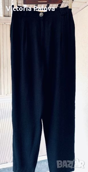 Панталонът е много комфортен, тежък,вискоза и лен. На колана от двете страни има ластик за удобство, в разтегнатия вид стига до 46см едностранно, в неразтегнат - 40см. Крачолът е дълъг 102см, отвътре - 72см, широк горе - 38см, долу - 20см.