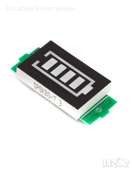 Индикатор за ниво на заряда на клетките в пакети от 1S до 8S, тип Li-Ion и Li-Po. Сегментираният дисплей със синя подсветка има 4 реда, всеки от които представлява 25% от заряда. Простата, ясна и компактна форма позволява широко приложение във всички устройства, захранвани от батерии 18650. Броят на измерваните клетки се задава чрез запояване на джъмпер на гърба на модула. Моля, не забравяйте да се уверите, че само едно поле е запоено, преди да подадете захранване, в противен случай модулът ще се повреди. Модулът не изисква отделно захранване, той черпи енергия от свързаната батерия.