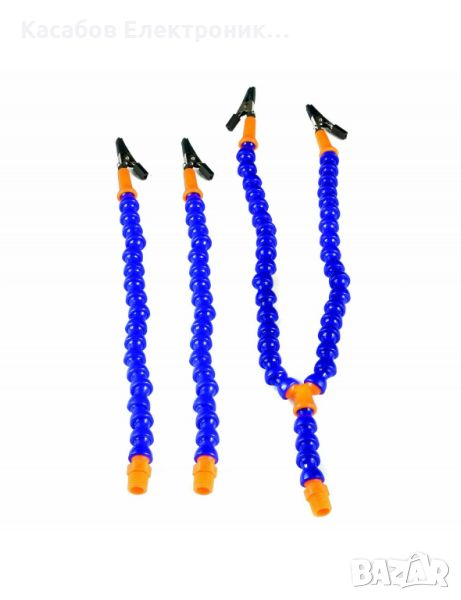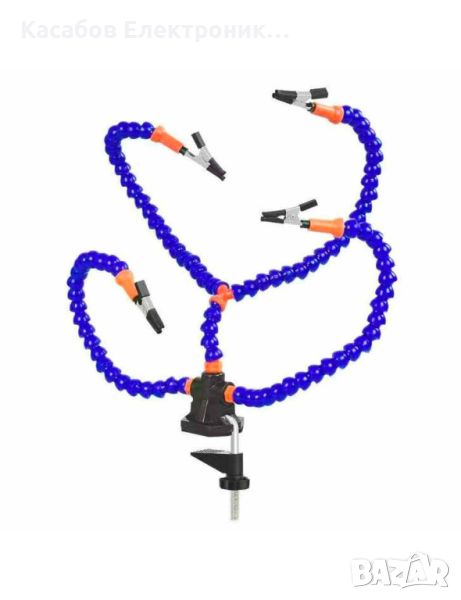 Третата ръка е инструмент, който улеснява запояването, сглобяването и прецизната поддръжка на електронни, механични и други компоненти. Този модел има четири гъвкави регулируеми рамена, които ви позволяват да настроите елементите на произволен ъгъл и да ги държите стабилни в желаната позиция.
