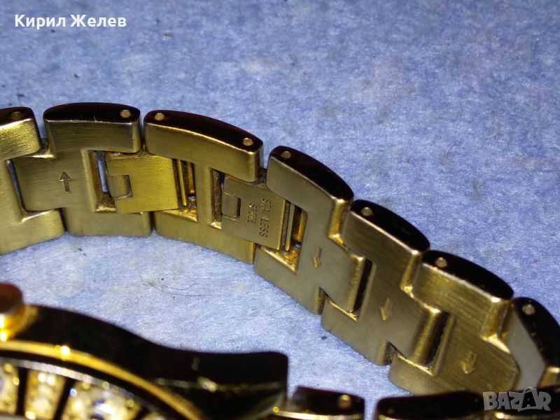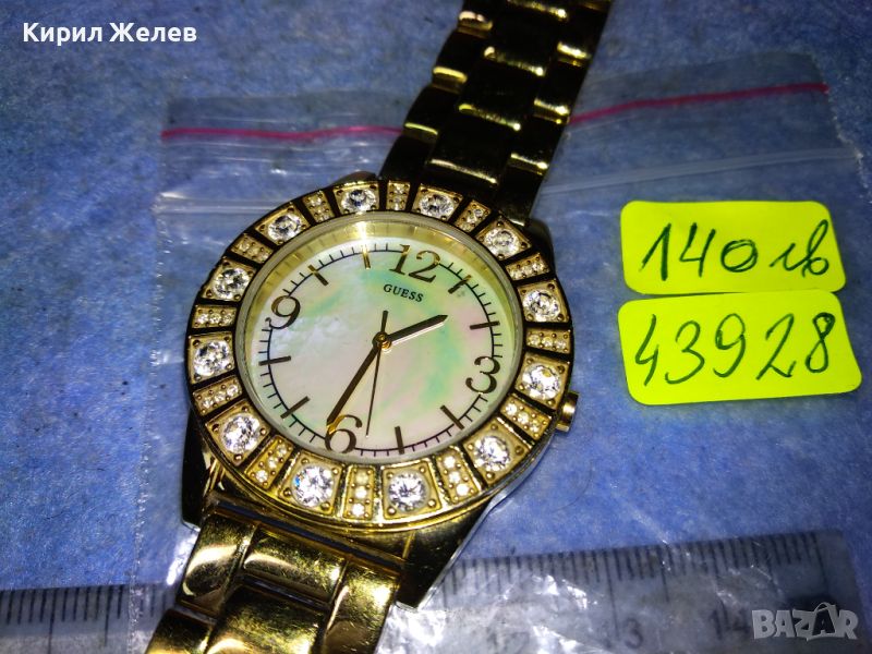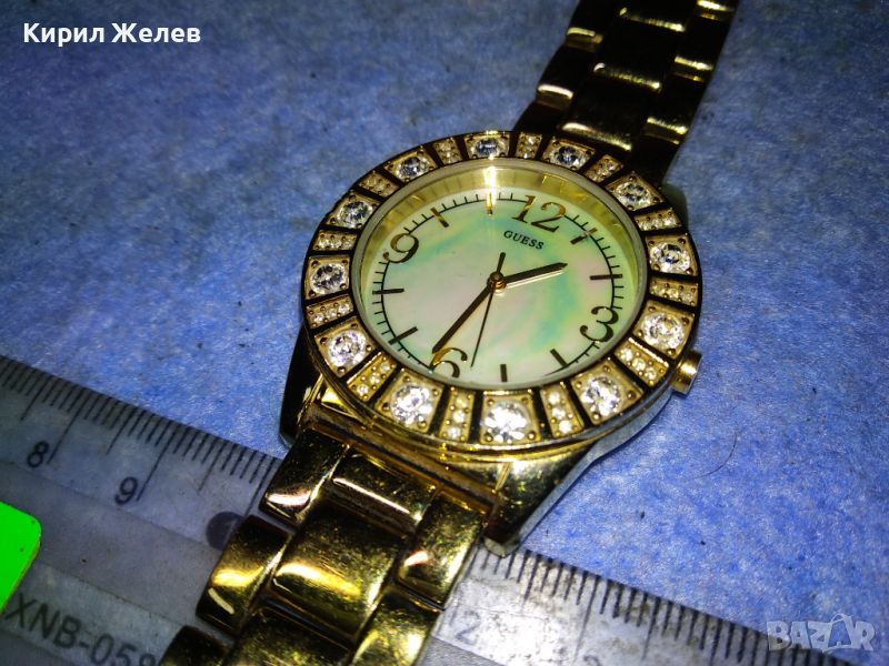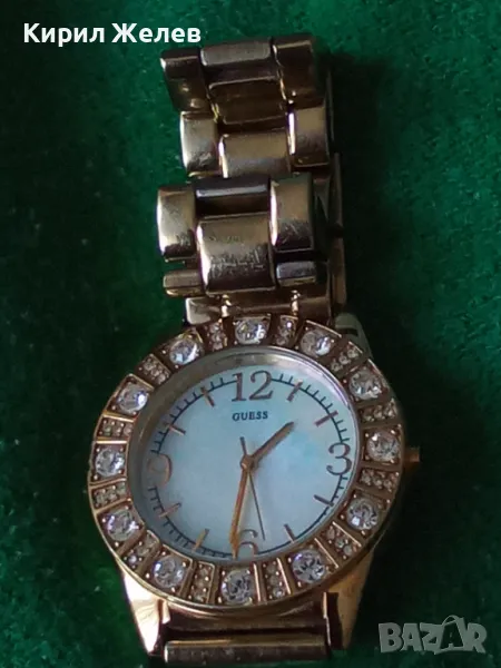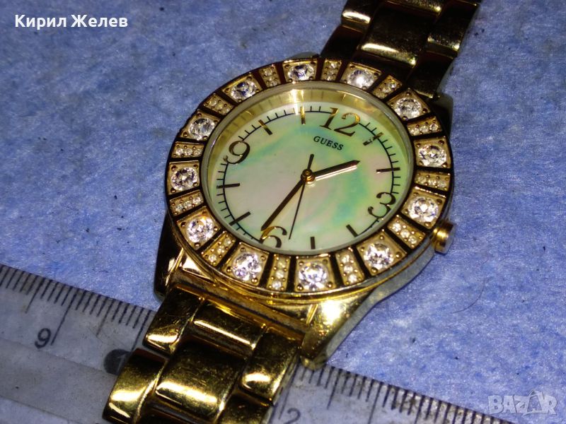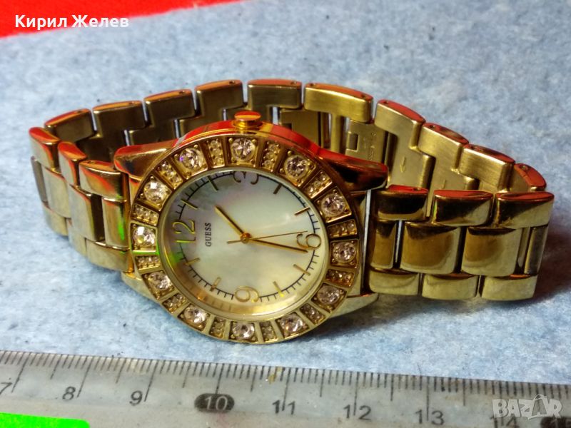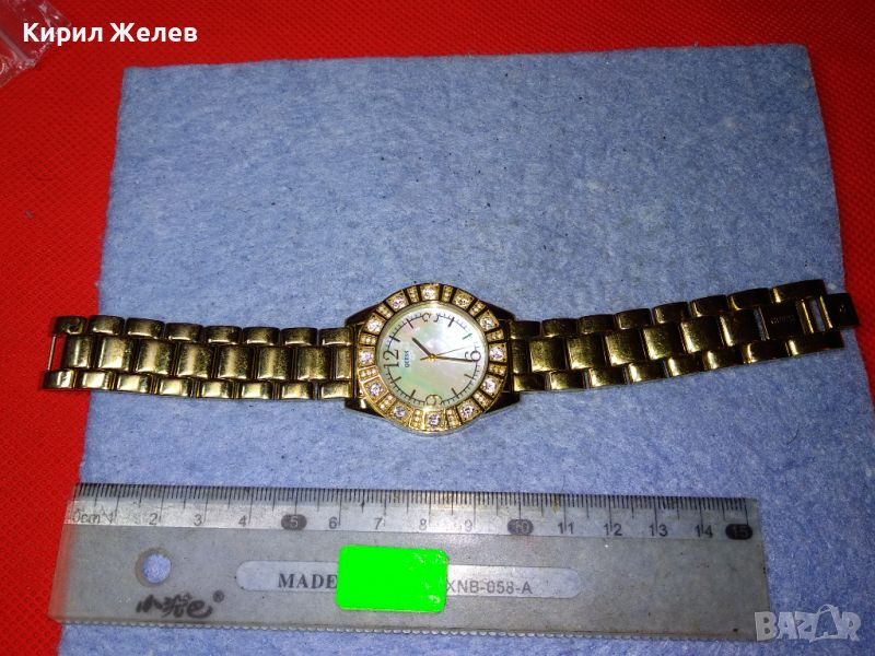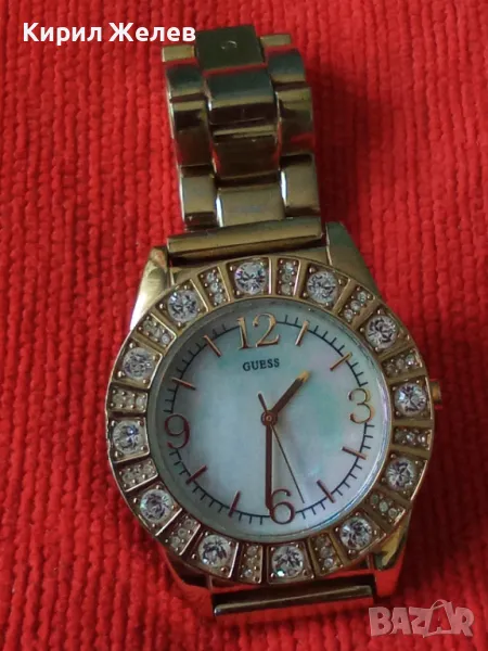 GUESS JAPAN MUVT Марков КВАРЦОВ ПОЗЛАТЕН ЧАСОВНИК със СЕДЕФЕН ЦИФЕРБЛАТ с ФАСЕТИРАНИ КРИСТАЛИ 43928