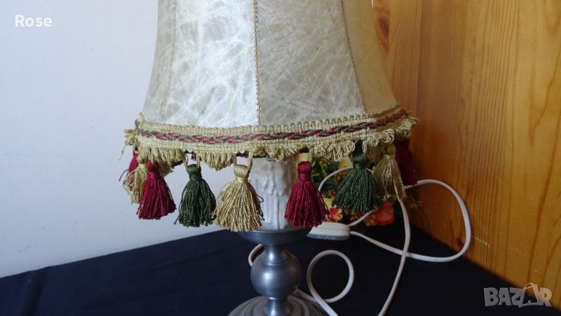 Настолна лампа вентидж маркирана, естествена кожа и метална основа.