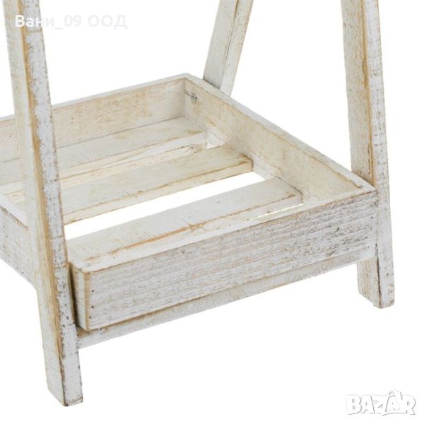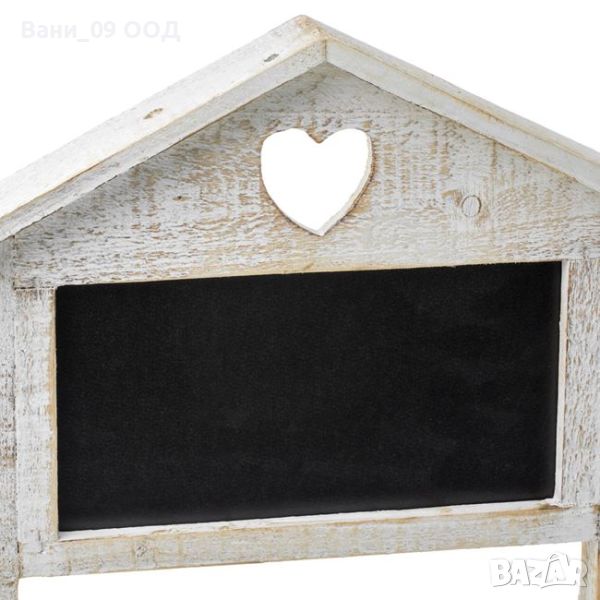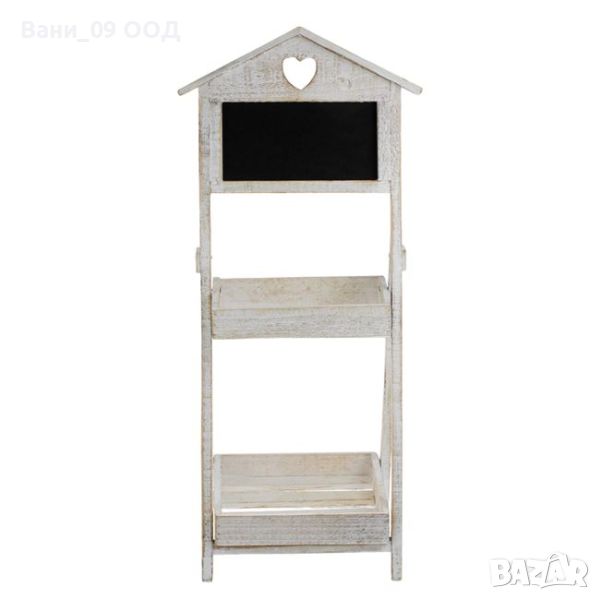 Винтидж дървен цветарник на два етажа за цветя в бял цвят със състарен ефект и с перфорирано сърце в горната част. Рафтовете са с размери 25х25см и 24х16см. В горната част има черна дъска, на която можете всеки ден да изпишете нещо различно!