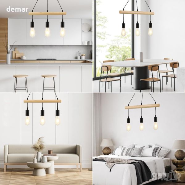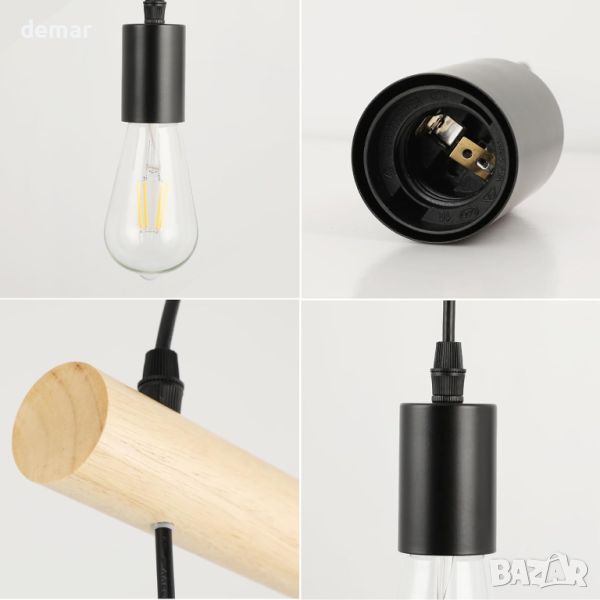 Изработена от естествен дъб и издръжлив метал, тази елегантна дървена висяща лампа разполага с регулируема черна жица, създавайки стилна атмосфера във всеки дом. Въпреки естествените вариации в зърното на дървото и цвета, той запазва изискан външен вид. Оборудван със стандартен цокъл E27, той поддържа широка гама крушки (халогенни, LED, CFL, с нажежаема жичка) до 60 W и работи при 220 V-240 V, въпреки че крушките не са включени. Височината на лампата е регулируема, с максимална дължина на кабела от 180 см, което я прави универсална за различни пространства. Идеален за подобряване на декора на всекидневни, спални, трапезарии и други със своята комбинация от ретро и семпли стилове, той обещава лесен монтаж
