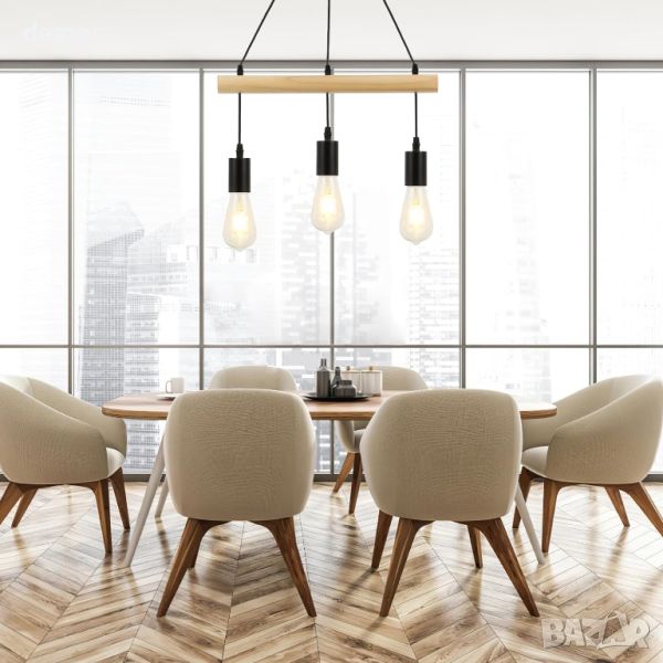 FORCOSO дървена висяща ретро лампа с 3 лампи E27, черно /крушките не са включени/