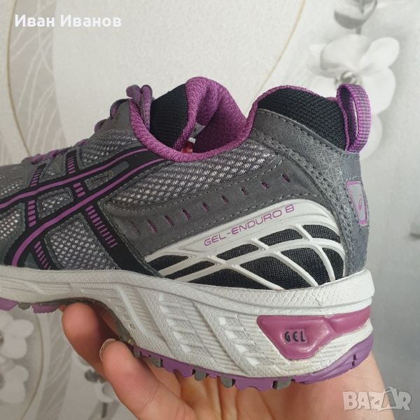 Asics Gel Enduro 8Нови Предназначение: Asics GEL-ENDURO 8 са фантастични обувки за жени, които започват своето приключение с бягане по пътека. Моделът е подходящ за бягане в паркове и гори, както и за крос. Тип стъпало: неутрално/супиниращо.Системата Trustik облекчава теглото на обувката, като същевременно осигурява по-добра стабилност на крака.Реверсивната външна подметка осигурява превъзходно сцепление върху всякакви повърхности, включително меки, мокри, хълмисти и скалисти терени.За по-високо ниво на устойчивост на износване, специална гума ASICS High Abrasion Rubber е използвана при производството на външната подметка, което значително удължава експлоатационния живот на обувката.GEL-ENDURO 8 е отлична маратонка за офроуд за начално ниво, която осигурява защита и комфорт при бягане по всякакви терени.ASICS Гел шок абсорбираща система (специален вид силикон) абсорбира удара и намалява натоварването върху петата, коленете и гръбначния стълб на спортиста.