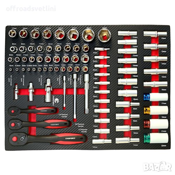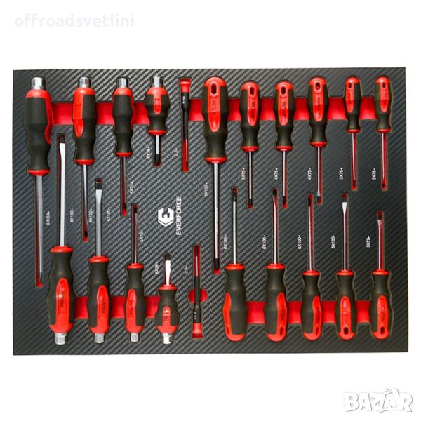 Разполага с всички нужни инструменти за един сервиз или работилница.