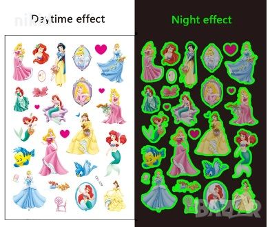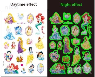 6 вида Принцеси принцеса светещи лист Tattoo татос татуировка временна детска татоси татоси татуси → Обява 45110340