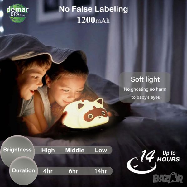 Нощната лампа за детската стая, изработена от хранителен силикон без BPA, предлага щадящо кожата и безопасно решение за осветление, което е едновременно забавно за въртене и е издръжливо срещу счупване. Този подобрен, по-дебел силиконов дизайн осигурява устойчивост и дълготрайност. Снабден с функция за заключване от деца, той предотвратява случайно действие от деца, заедно с функция за изключване на светлината (30 минути/60 минути) за допълнителна безопасност и удобство, което го прави отличен спътник до леглото. С четири регулируеми нива на яркост (100%-60%-30%-0%), той е лесен за управление чрез стискане, прищипване или потупване, удвоявайки се като облекчаване на стреса. Освен това включва отвор за окачване за гъвкаво поставяне. Опакован с Type-C USB кабел, неговата вградена батерия от 1200mAh поддържа 3-12 часа преносима употреба. Излъчвайки мека, незаслепяваща светлина, той е идеален подарък за тийнейджъри, приятели или дори като удоволствие за вас самите, идеален за подобряване на декора на спалнята или общежитието. Атрактивно проектираната опаковка го прави възхитителен и визуално привлекателен подарък, със сигурност ще предизвика усмивка на лицето на всеки със своя сладък дизайн на миеща мечка.