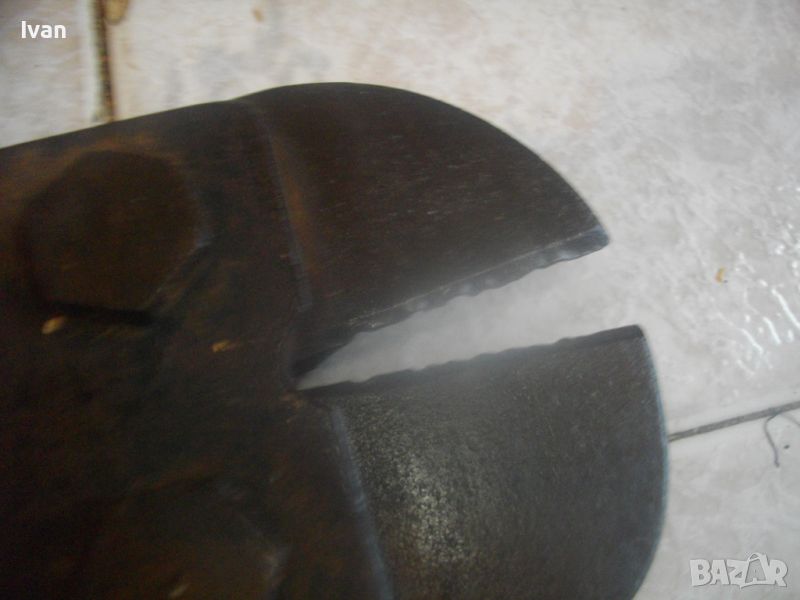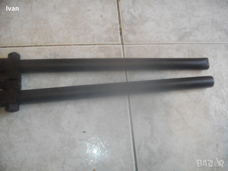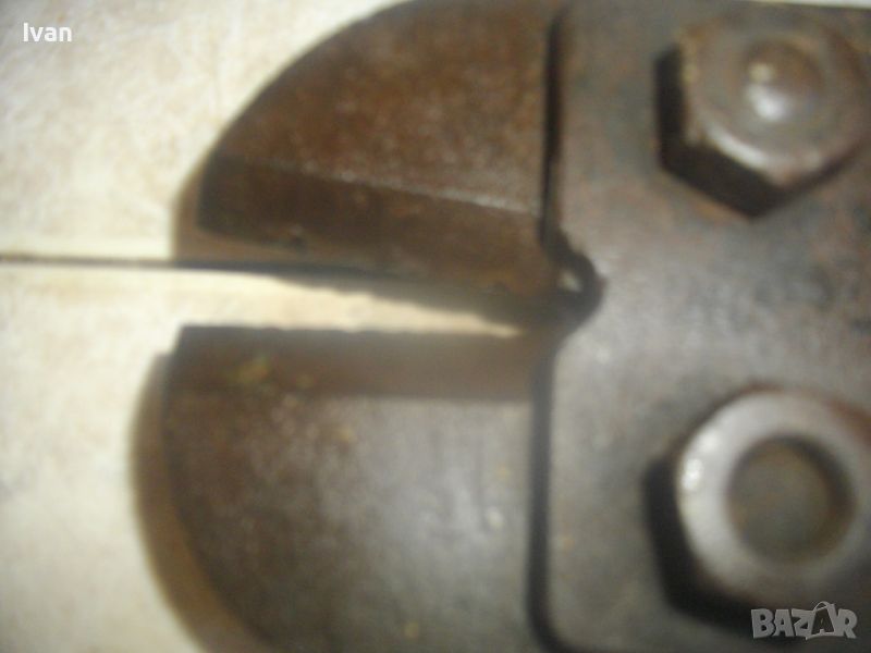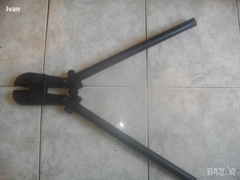 ОПИСАНИЕ на ножица за рязане на арматура - 159 лв. Старо качество, изцяло от дебело плътно масивно желязо. Липсват маркировки на производител. Дължина на инструмента - 57,5 см, тегло - 3,5 кг. Дръжки метални тръби ф 25 мм, кухи. Челсти отварят до 10 мм. Остриетата имат съвсем леко минимално захабяване. Запазен външне вид на инструмента и добро техническо/работно състояние.